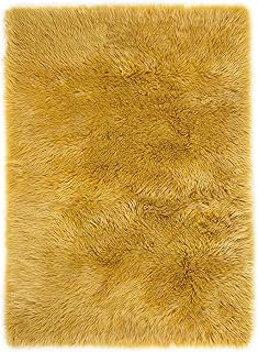 andiamo Ovium Tapis Imitation Peau de Mouton pour Salon Chambre à Coucher sur Chaise Jaune Moutarde Acrylique + Polyester 80 x 150 cm
