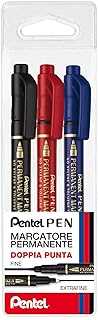 Pentel N75W marqueur permanent double poche, 3 pièces couleurs assorties (noir, rouge, bleu)