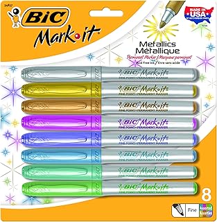 BIC PT03 Marqueur permanent à pointe fine métallique Couleurs assorties