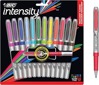 BIC Marqueur permanent Marking Fashion - Pointe ultra fine - Couleurs assorties - 12 pièces