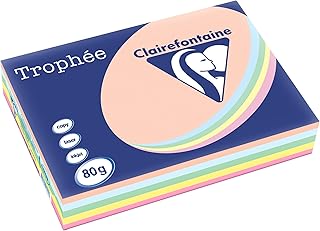 Clairefontaine Trophee Ramette de 500 feuilles papier couleur 80 g A4 Pastel Rose Canari Vert Bleu Saumon