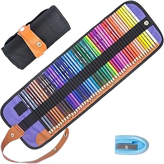 Riyanon Crayons de Couleurs enfants, Crayons de couleur Lot de 50 crayons d'art de couleurs Kit de dessin avec pochette portable Roll-Up Sac en toile Étui.