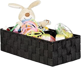 Relaxdays Panier de rangement petite corbeille déco étagère 3 compartiments salle de bain HxlxP: 10x35x17 cm, noir