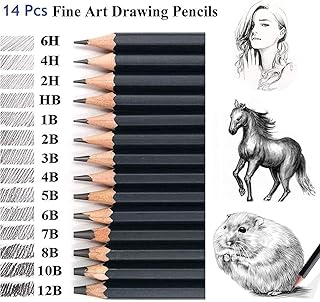 Coocnh Lot de 14 crayons de dessin pour croquis 12B 10B 8B 7B 6B 5B 4B 3B 2B B HB 2H 4H 6H graphite pour enfants adultes, artistes, débutants
