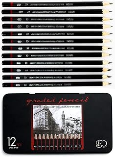 Crayon de Dessin, GUBOOM Crayon Dessin, Crayon de Croquis, 12pcs Artiste Set De Crayons À Dessin Pour Étudiants Enseignants Enfants Adultes Artistes Débutants Professionnels (2H-8B)