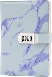 Lirener Créatif Cuir PU Carnet de Notes Agenda Planificateur Organisateur avec Serrure à combinaison(schéma de marbre), A5 Cadenas Carnet de Notes avec mot de passe, Porte-stylo, 150x218mm