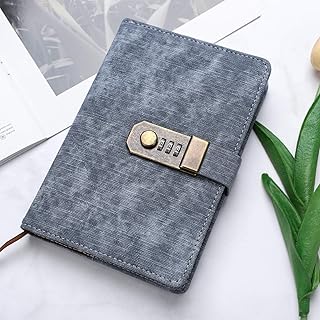 Wohlstand Carnet de Notes Cahier Journal Bloc-notes Aidemémoire Cadenas Carnet Fournitures d'école avec Serrure à combinaison Cahier Journal Bloc-notes,Rétro Vintage PU Cuir 112 pages 212*147mm(bleu)