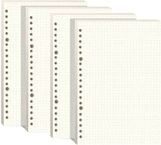 Hossom Lot de 4 paquets Papier de Recharge, A5 Recharge Papier Pointillé, A5 6 Trous Vierge Feuillets Mobiles pour A5 Carnet Rechargeable Journal Cahier Agenda 180 Feuilles/360 Pages(21 x 14 cm)