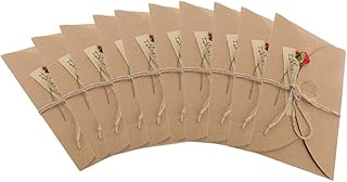Rocita 10 Ensembles Kraft Cartes de voeux Main Kraft Invitations Carte Vierge et enveloppes avec des Fleurs séchées, Ficelles et Autocollants pour Le Mariage de fête d'anniversaire