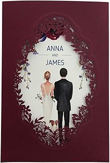 Dream Planner Lot de 250 cartes d'invitation de mariage découpées au laser avec enveloppes et feuilles intérieures vierges pour mariage, fiançailles, mariage et fiançailles CW0015, bordeaux