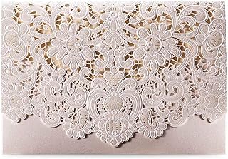 JOFANZA Paillettes Découpées au laser avec cartes d'invitations de mariage avec 50x dentelles en dentelle imprimables et enveloppes vierges