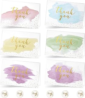 Lot de 42 cartes de remerciement aquarelles dorées avec autocollants et enveloppes pour mariage, Thanksgiving, entreprise, fête prénatale