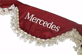 AutoCommerse Rideau de pare-brise avant en satin avec glands blancs - Panneau pare-soleil - Pour camions Actros Atego Axor Arocs - Camions lourds - Bordeaux