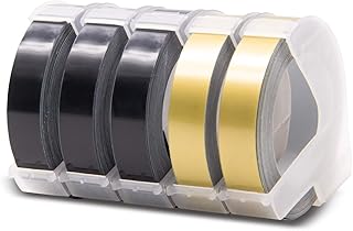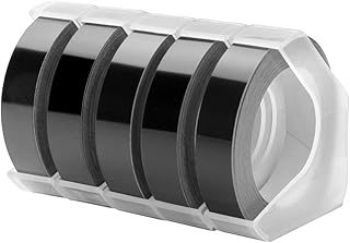 Fimax Ruban de Marquage 3D compatible pour Dymo Ruban Noir 9mm x 3m Rechange pour Dymo Omega Home Embosser S0717930, Dymo Junior S0717900 et Motex E-101/E-303 Embossing Etiqueteuse, Paquet de 5