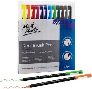 Mont Marte Feutre Coloriage – 12 Brush Pens – Peinture à mélange d'eau – Feutre pinceau idéal pour Peinture, Dessin, Handlettering, Calligraphie