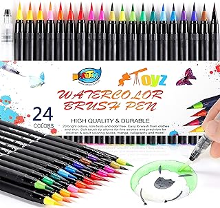 ARTOYS Feutre Pinceau Aquarelle Set Enfant 24 Stylo Aquarelle+1 Aqua Brush,Flexible Feutres Coloriage Pinceau Aquarelles pour Livres Coloriage,Peintures,Calligraphies,Manga,Dessins des Adultes Enfants
