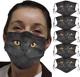 Vijtian 1/5PC Halloween Masque visage lavable réutilisable couvrant le visage Adulte, femme, homme, animal humoristique imprimé peut mettre filtre en plein air, camping, cyclisme, protection de moto, bandanas cadeau