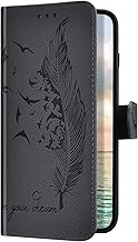 Uposao Compatible avec Samsung Galaxy A20e Coque de Protection Etui en Cuir PU Leather,Vintage Oiseau Plume Motif Housse à Rabat Magnétique Portefeuille Pochette Clapet Stand Flip Case Wallet,Gris