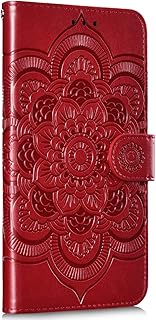 Saceebe Compatible avec Samsung Galaxy J6 Plus 2018 Coque Housse en Cuir Pochette Portefeuille Etui Fille 3D Motif Mandala Fleur Coque Housse de Protection à Rabat Magnetique Flip Cover Stand,Rouge