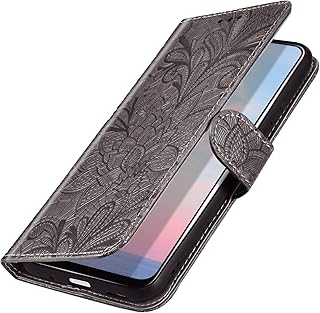 MoreChioce Coque Galaxy A20,compatible avec Coque Rabat pour Samsung Galaxy A30,Élégant Gris Fleur de Dentelle Relief Housse à Clapet Etui en Cuir Portefeuille Protective Flip Case Magnétique
