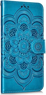 Saceebe Compatible avec Samsung Galaxy A70 Coque Housse en Cuir Pochette Portefeuille Etui Fille 3D Motif Mandala Fleur Coque Housse de Protection à Rabat Magnetique Flip Cover Stand,Bleu