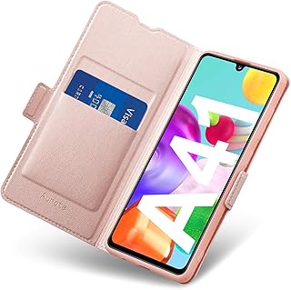 Samsung Galaxy A41 Coque, Samsung A41 Housse, Coque Samsung A41 Rabat/Clapet en Cuir PU Portefeuille Livre, Samsung A41 Etui, Protection Flip/Folio Phone Cover Case, Porte Carte, Magnétique. Or Rose